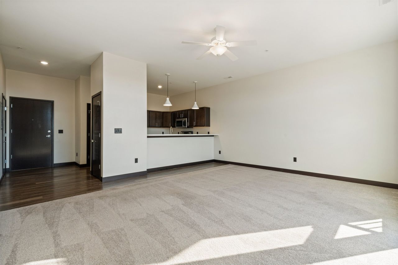Indulge in simplistic, low-maintenance living with this beautifully designed second-floor condominium, ideally situated near the Maquoketa River and Historic Downtown Dyersville. Thoughtfully crafted, this condo offers 1 bedroom and 1 full bathroom, with an efficient layout that blends comfort and convenience. Step inside to a spacious living room, where large windows create a bright, inviting atmosphere and connect you to the surrounding community. The open-concept kitchen is designed with both convenience and entertaining in mind, featuring an eat-at island and stainless steel appliances. Enjoy time outdoors on your private south facing deck or common easterly patio, a peaceful retreat to relax and unwind. This unit also includes garage space, adding everyday convenience. Perfectly positioned with easy access to downtown Dyersville's restaurants, boutiques, breweries, walking trails, and local attractions, as well as the scenic views, this condo offers the ideal blend of location, accessibility, and easy living. Whether you're seeking a full-time residence, a low-maintenance retreat, an investment opportunity, or a place to be closer to family, this condo delivers comfort and convenience in a highly desirable setting. Schedule your private showing today and experience firsthand all this property has to offer. $174,900 120 Twin Steeples Circle NE Unit 206 Dyersville, IA