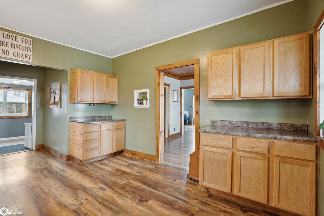 Nestled on the edge of town, this charming 2.72-acre property offers the perfect blend of rural serenity and modern comfort. At the heart of it all is a beautiful, turn-of-the-century two-story home with over 2,300 square feet of living space, providing ample room for both relaxation and entertainment. Step outside to find an incredible outdoor space designed for both work and play. The 34' x 34' machine shed/shop, built in 2008, is a true standout. Finished with durable concrete floors, extra loft storage, and three spacious garage doors. One door is 16 feet tall, making it ideal for housing an RV, trailer, or boat. The opportunities for hobbies and projects are endless. For outdoor enthusiasts, the attached screened-in porch offers the perfect spot to relax and take in the view of the backyard and unique track. Inside the home, you'll find a spacious and thoughtfully updated living space. The main floor welcomes you with a cozy front porch, dual entry doors that lead into either the recently updated kitchen or dining room, charming barn wood ceilings and accent walls. Freshly updated lighting and flooring flow throughout the home, adding a modern touch while maintaining its historic charm. Two generous living rooms, one featuring a wood-burning fireplace, create the perfect atmosphere for family gatherings or quiet evenings in. A main-floor laundry room and convenient half bath offer additional flexibility for your lifestyle.