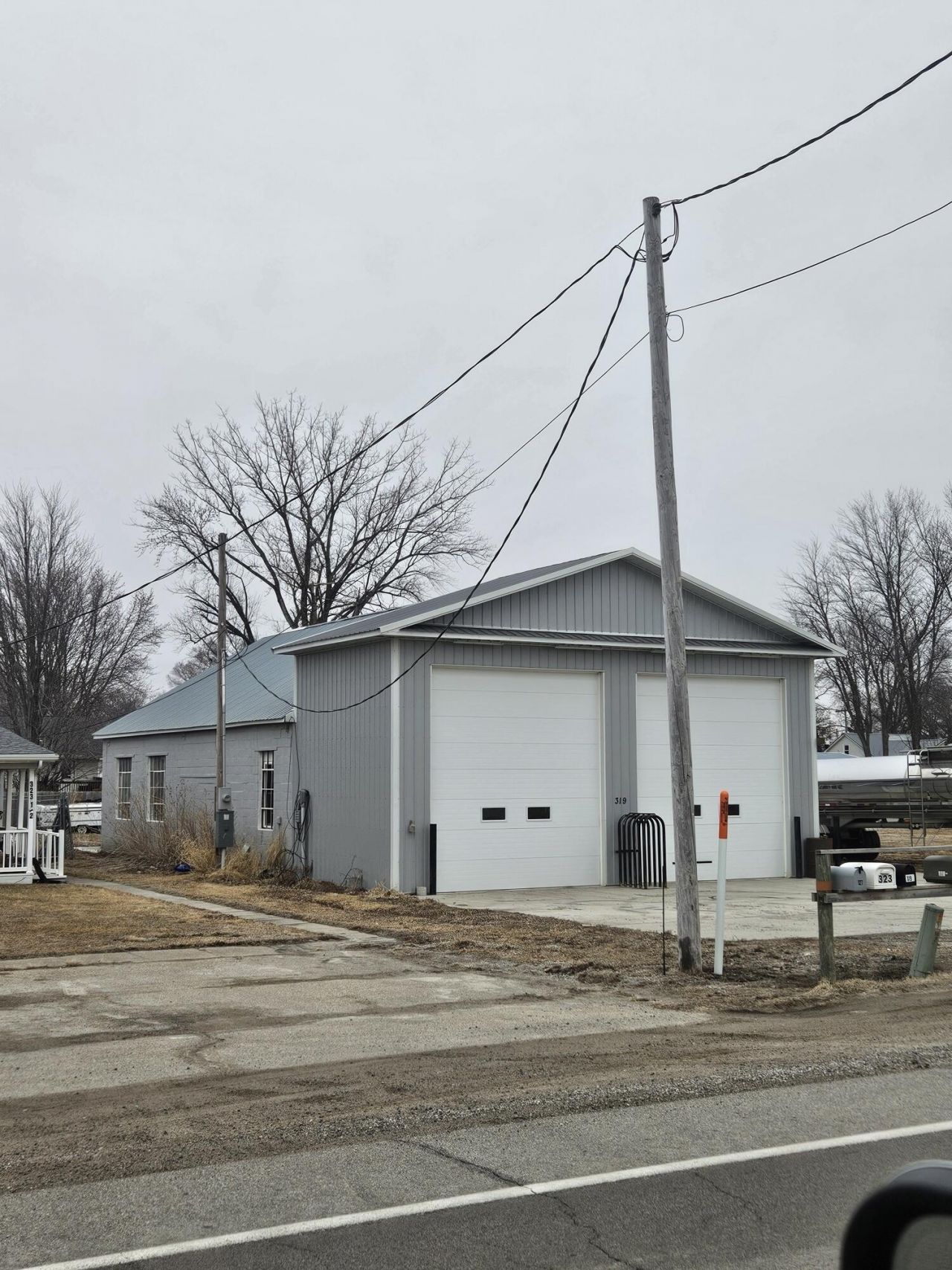 Heated 36'x66' shop building with footings and concrete already poured for expansion with a 2nd bathroom rough in. Clear span building, so the interior walls can be removed. This property has 3 overhead doors with 2 large 15' x 14' doors for semi storage, floor drain, water, heat, 3 phase power, air compressor, 4 post lift, tire machine, sand point water and city sewer. This property could be used for a hobby shop, business or add on a living area.